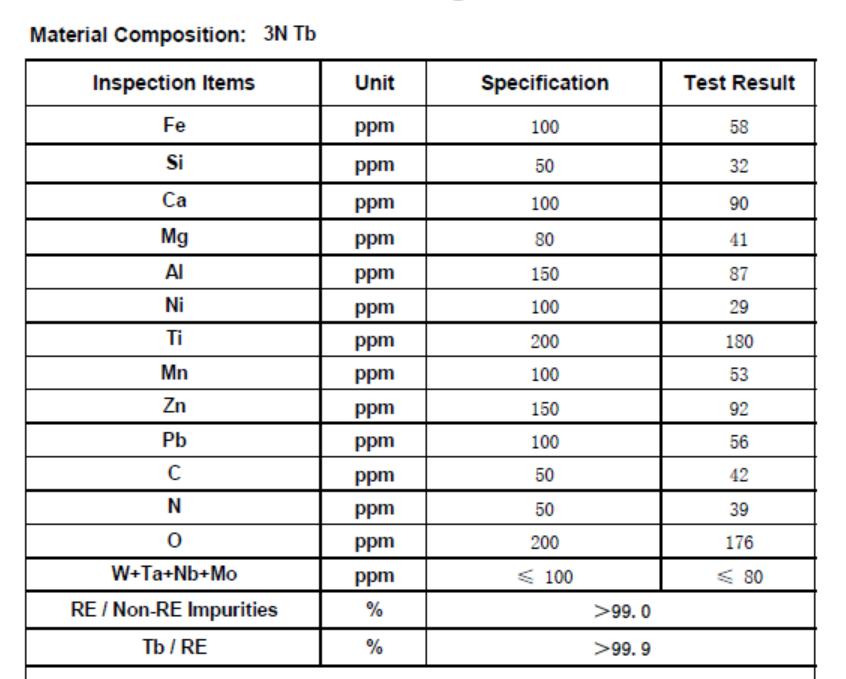 品名: 円筒型 Tb(テルビウム)ターゲット