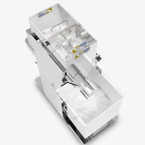 コンテナーの中に、材料を入れます。標準では15㎏まで投入可能ですが、仕様に応じカスタマイズ可能です。