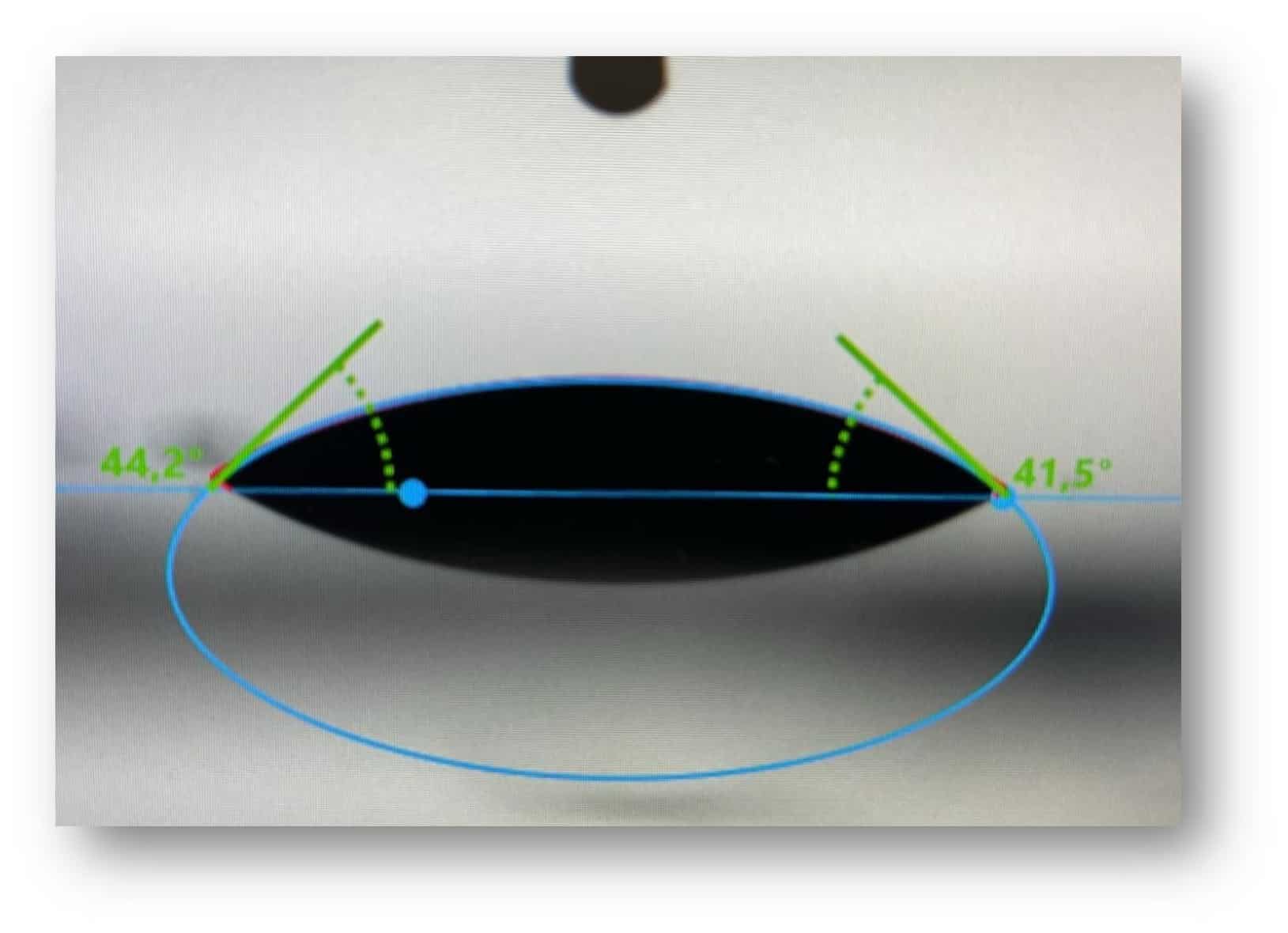 註:接触角が、O2の混合度合いに応じ低下していることが見て取れます。